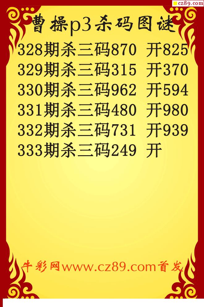 25年333期郁达夫P3杀码图