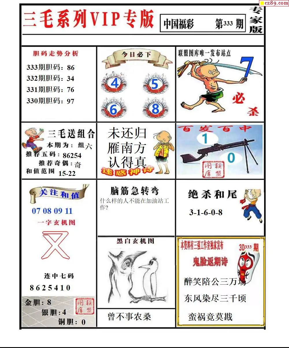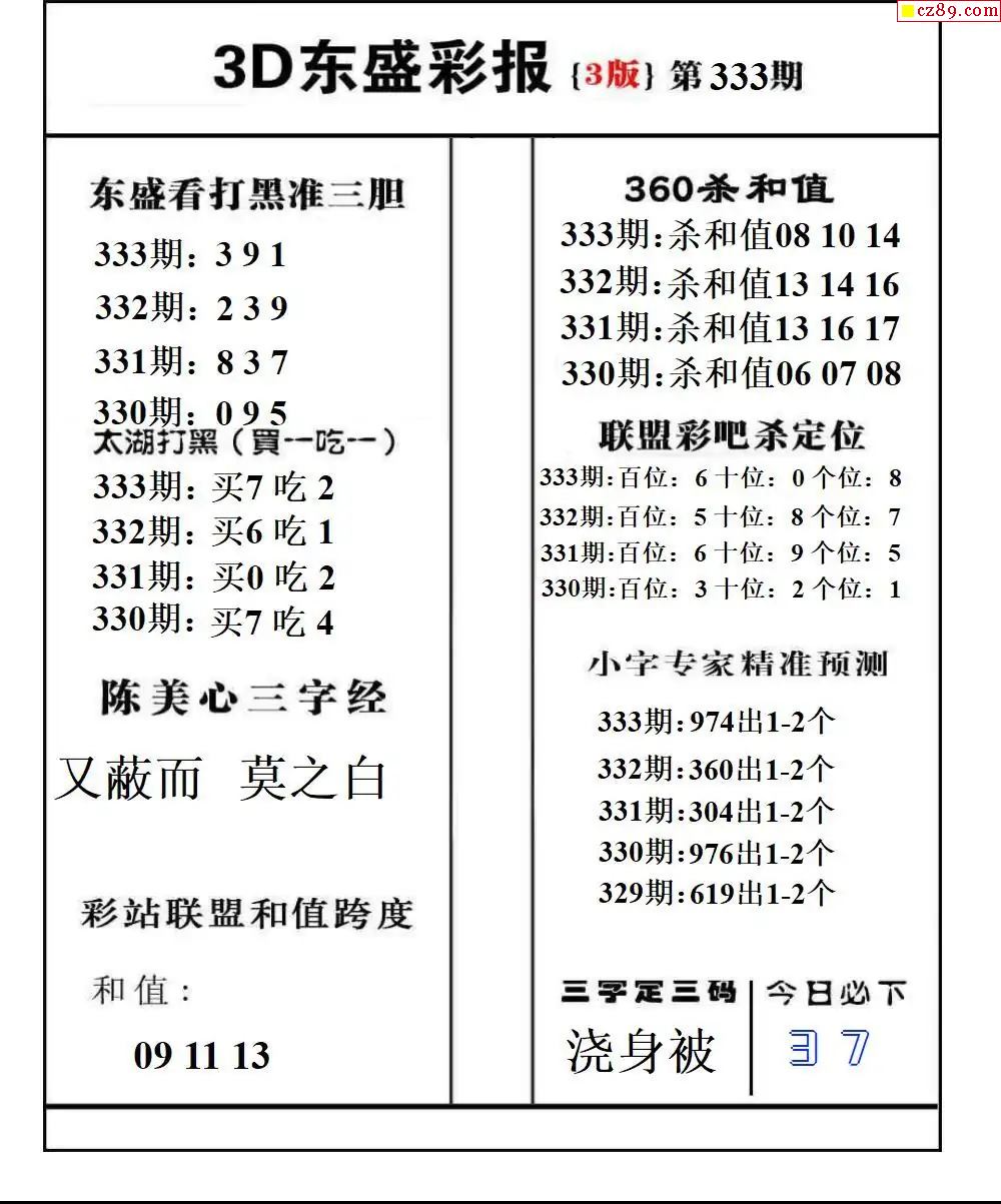 福彩3D2025333期东盛彩报+精品三毛会员版