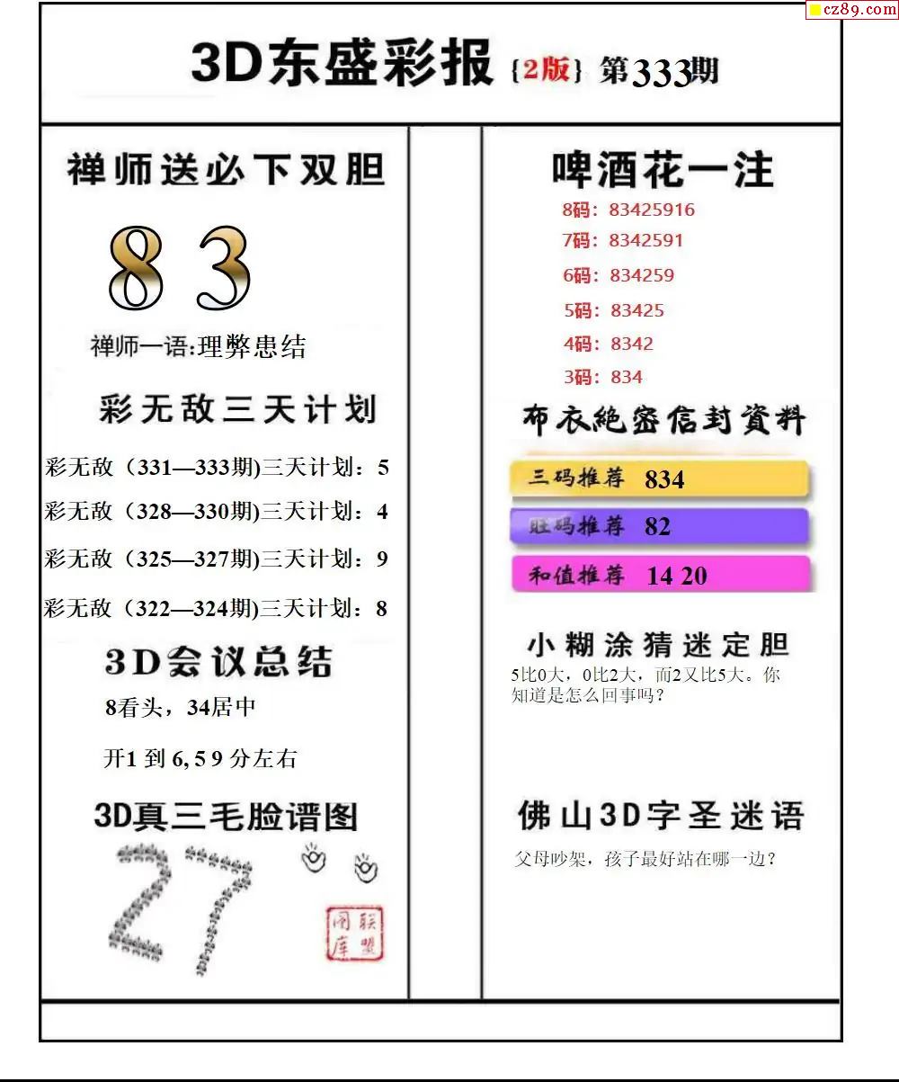 牛彩版3D字谜彩报图25年334期打印版