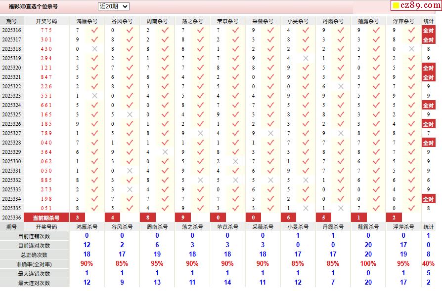 25年336期彩宝贝专家福彩3D杀号定码图表