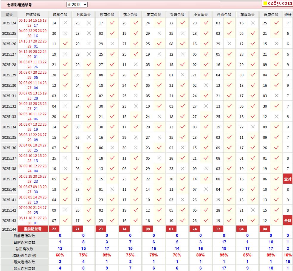 七乐彩144期 彩宝贝专家杀号码预测图表