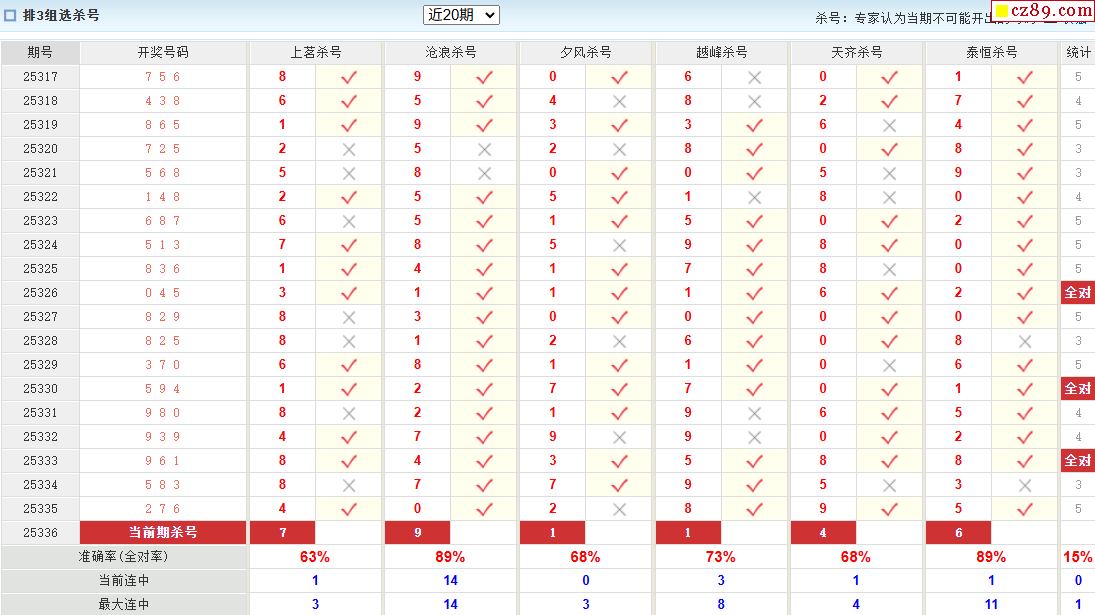 25年336期彩宝贝专家体彩P3杀号定码图表