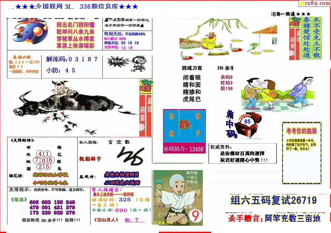 杀手+鑫马快报+字迷汇总25年336期3d图谜