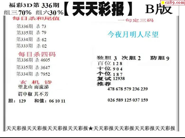 福彩3D2025336期天天彩报A版 天天彩报B版