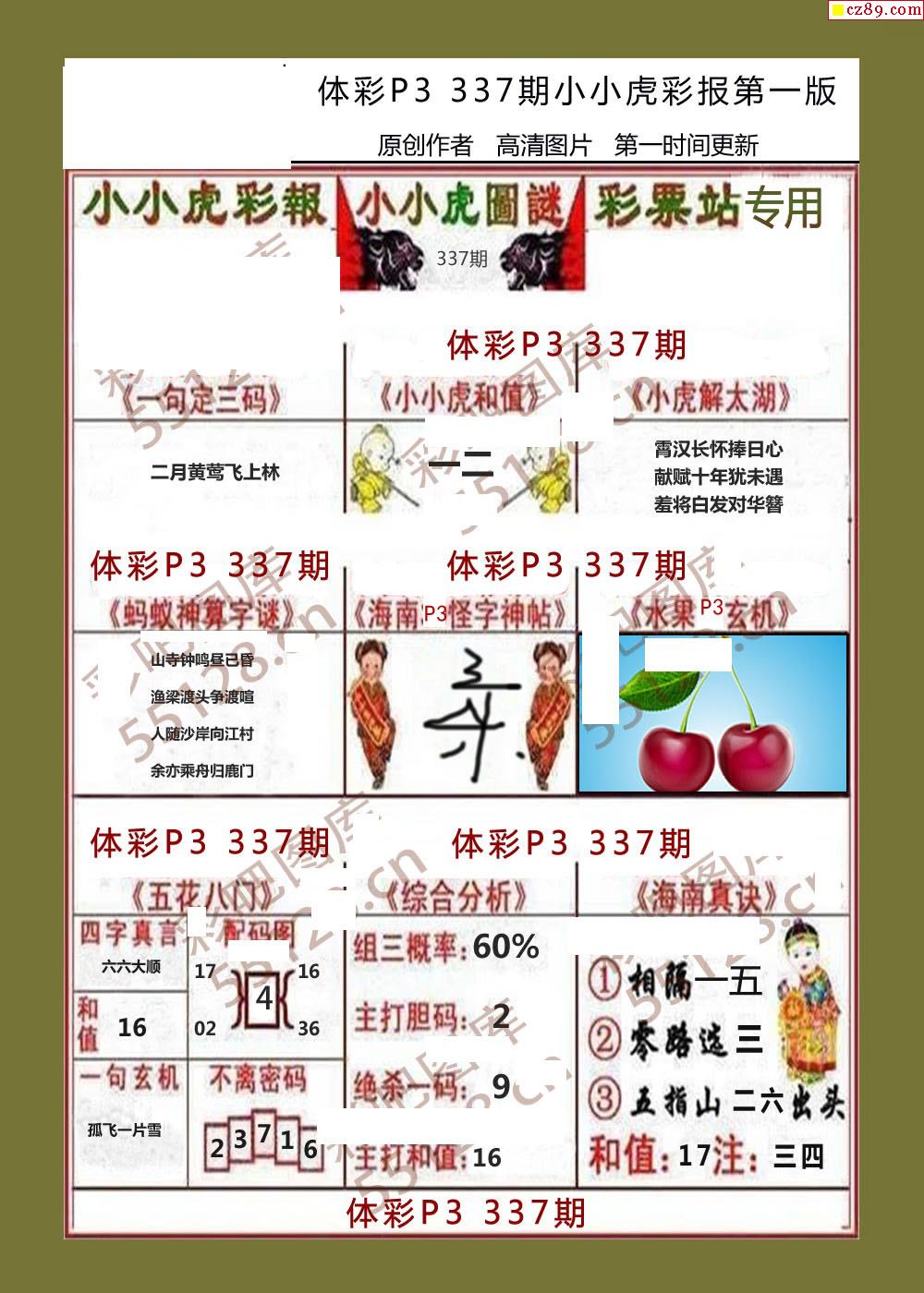 2025年337期牛彩网体彩P3画迷图谜汇总分享