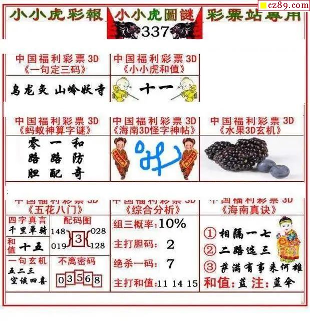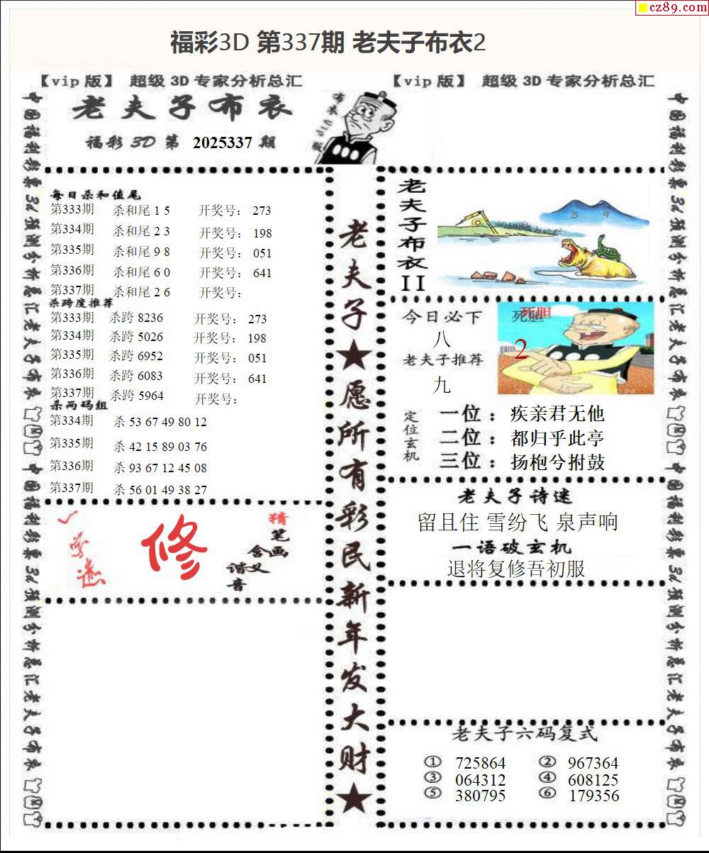福彩3D2025337期 白鱼舟3D图谜哼哈二将斗胆图