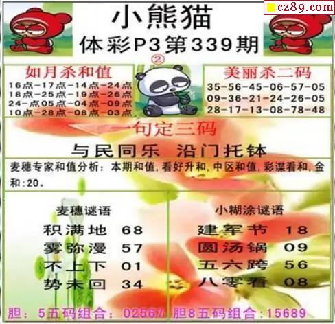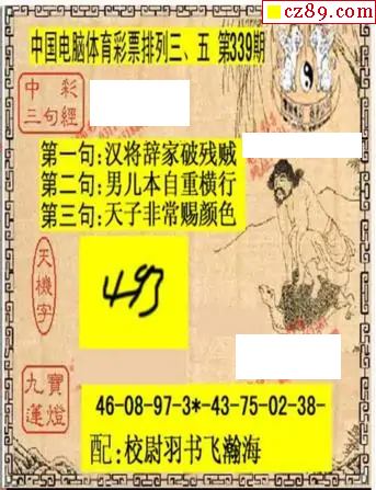 2025年339期牛彩网体彩P3画迷图谜汇总分享