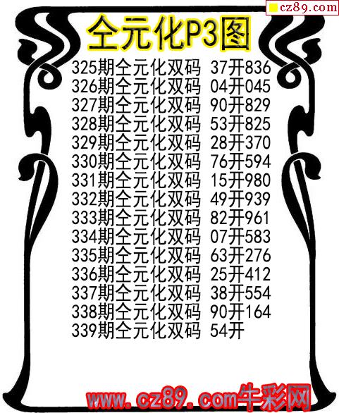 2025年339期牛彩网体彩P3画迷图谜汇总分享