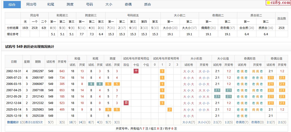 339期福彩3D试机号549对应开奖号的组选分析结果