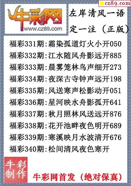 25年340期牛彩网福彩3D字谜汇总大全【晚间版】
