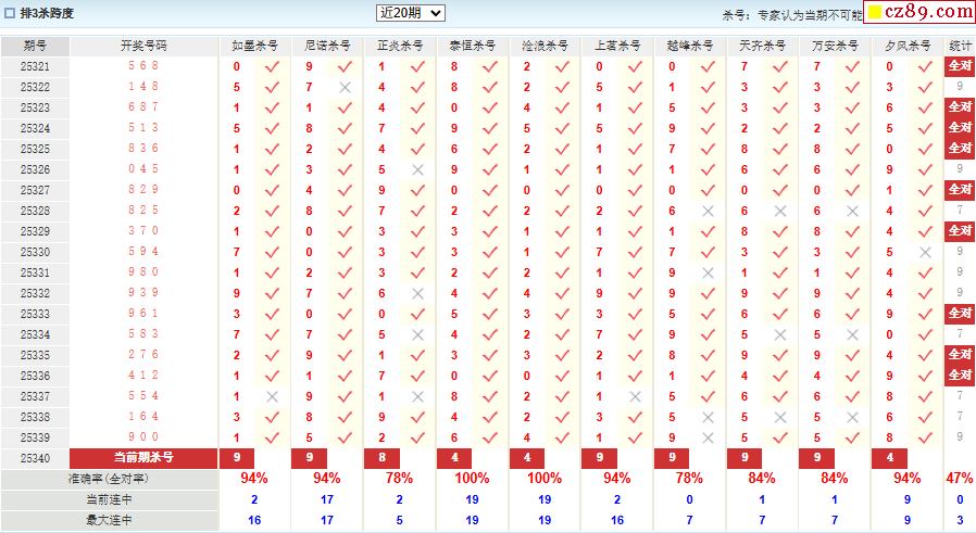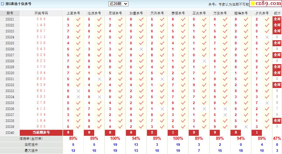 25年340期彩宝贝专家体彩P3杀号定码图表