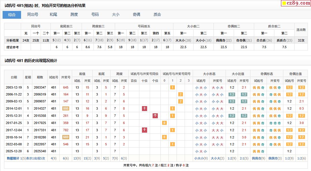 340期福彩3D试机号481对应开奖号的组选分析结果