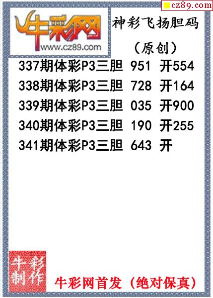 神彩飞扬三胆341期体彩P3图谜(原创)