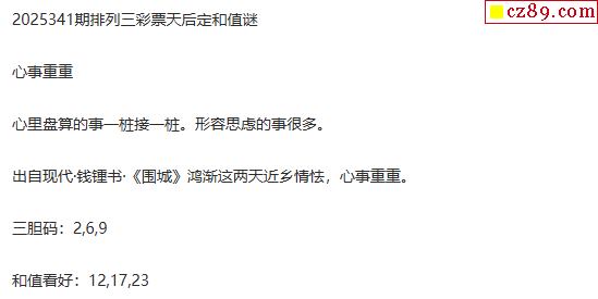 彩票天后p3定和值谜25年341期