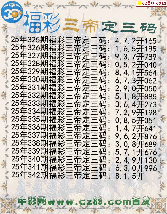 福彩三帝定三码342期3d图谜