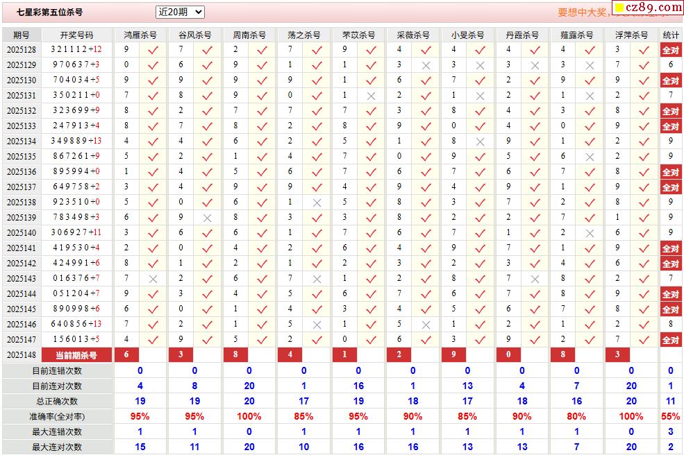 148期彩票专家体彩七星彩定位杀号图表