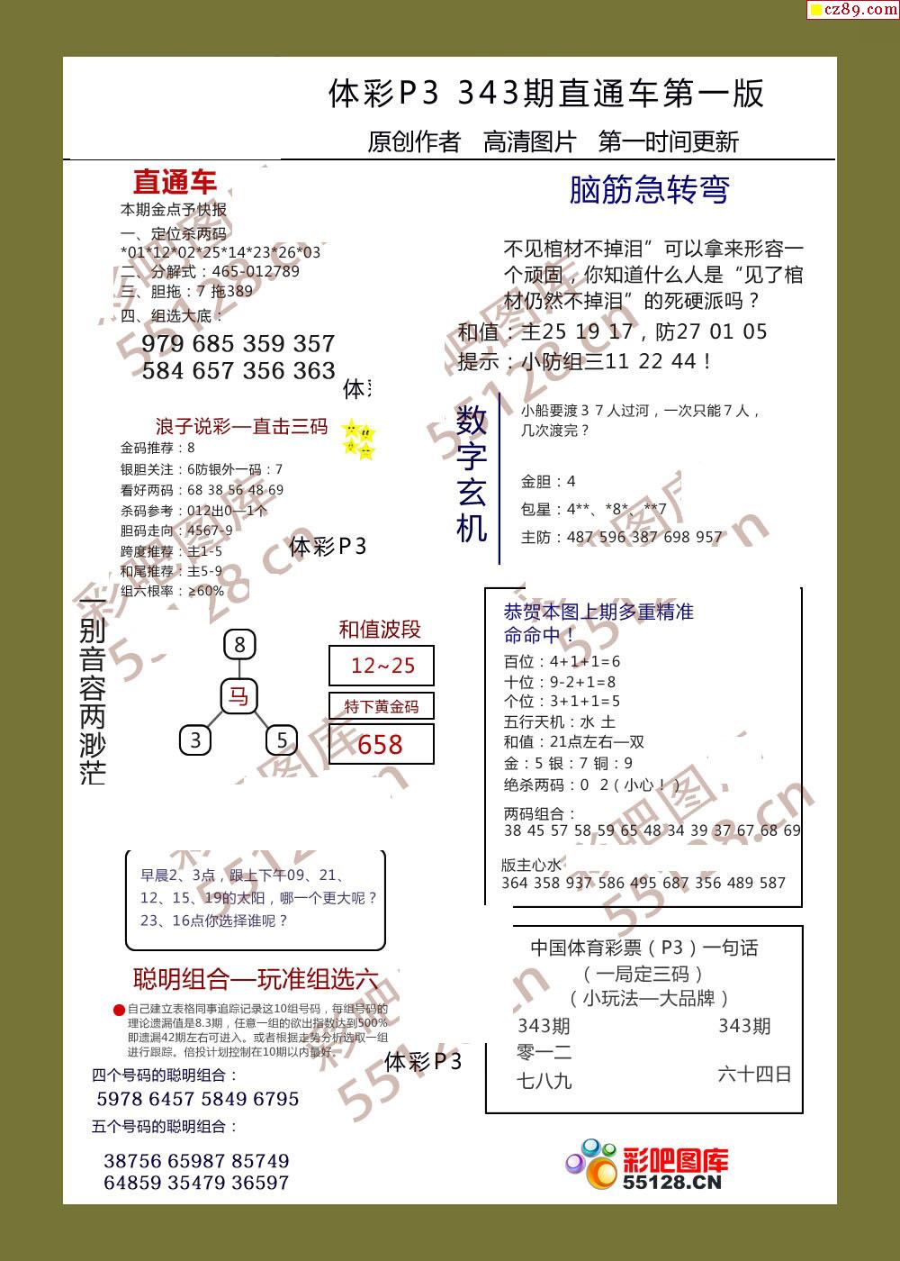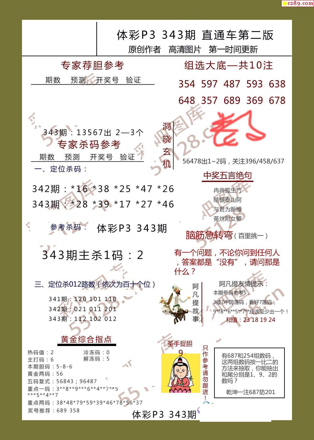 直通车AB版343期体彩p3图谜