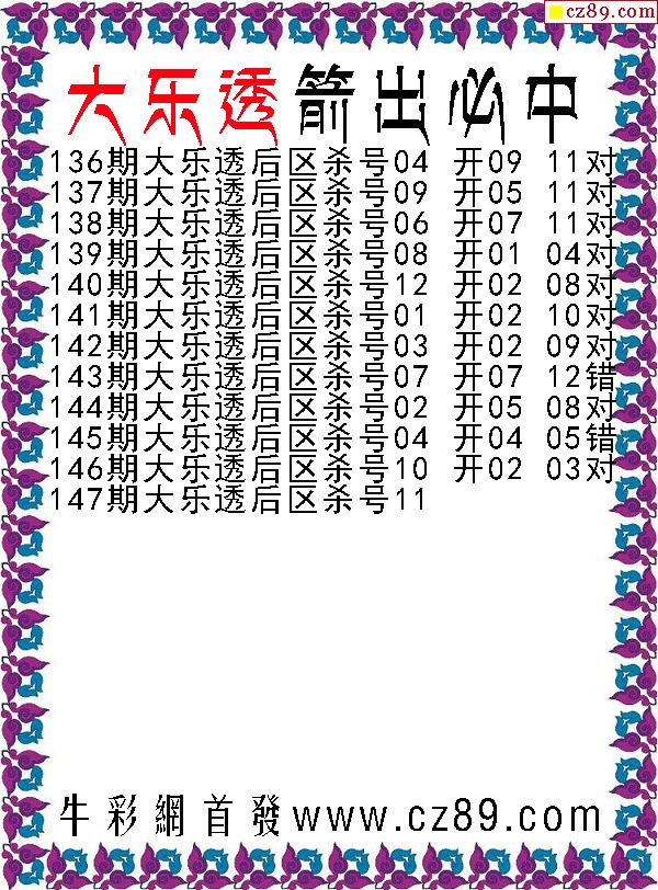 大乐透147期牛彩特邀专家前区后区杀号定胆图表