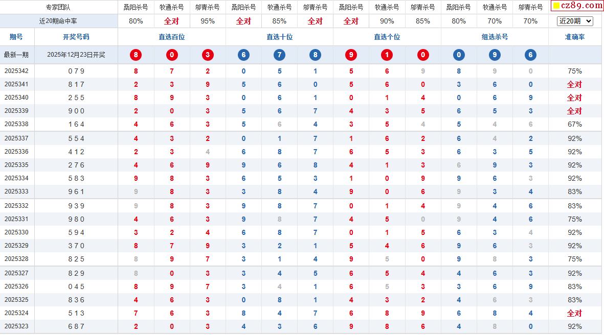 25年343期彩宝贝专家体彩P3杀号定码图表
