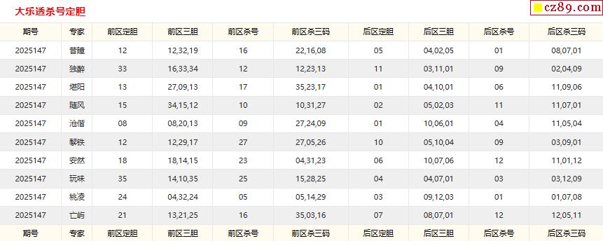 大乐透147期牛彩特邀专家前区后区杀号定胆图表