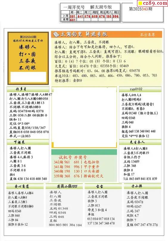 2025343期解太湖3d字图迷汇总报