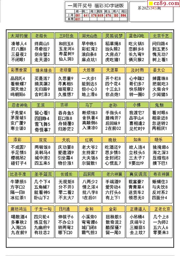 2025343期福彩3D图谜汇总