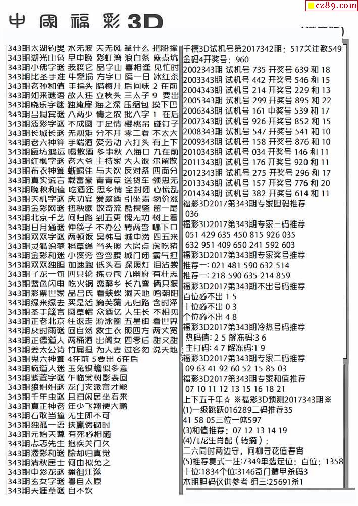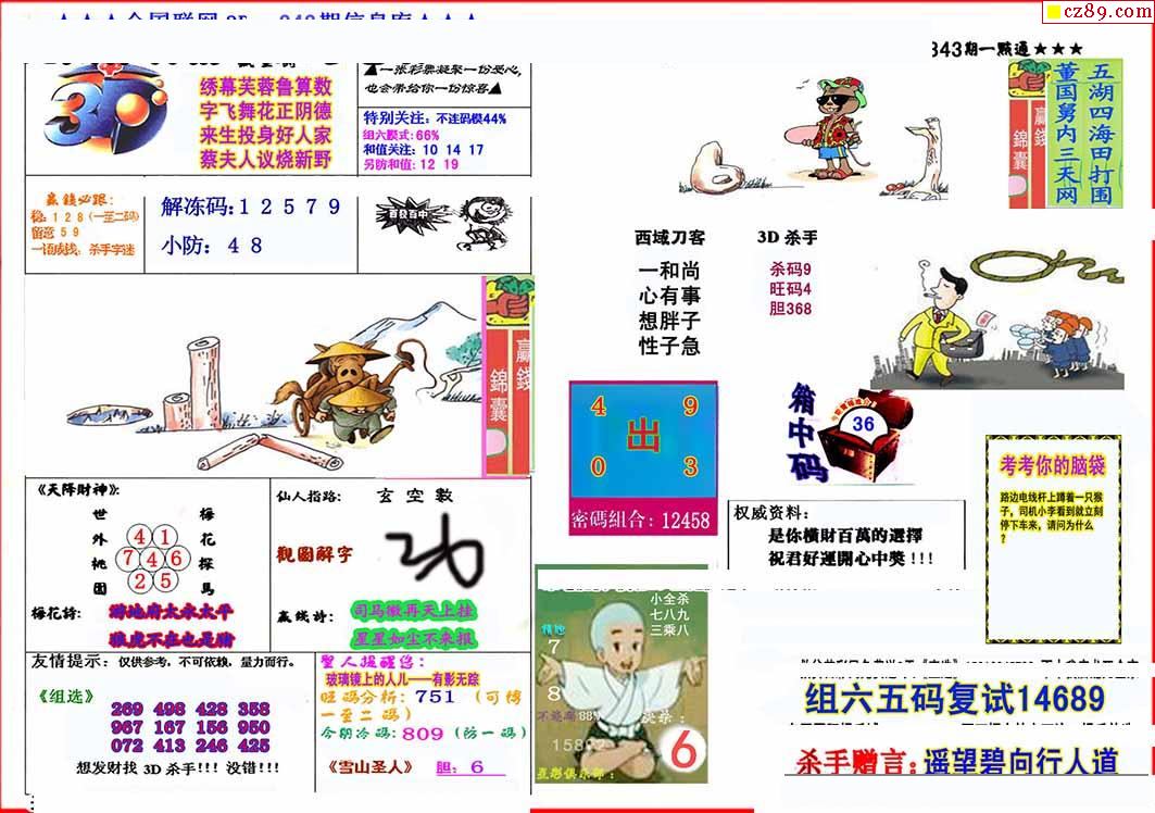 杀手+鑫马快报+字迷汇总25年343期3d图谜