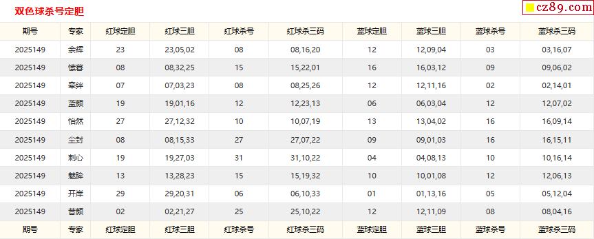 双色球149期 彩宝贝专家红蓝球杀号预测图表