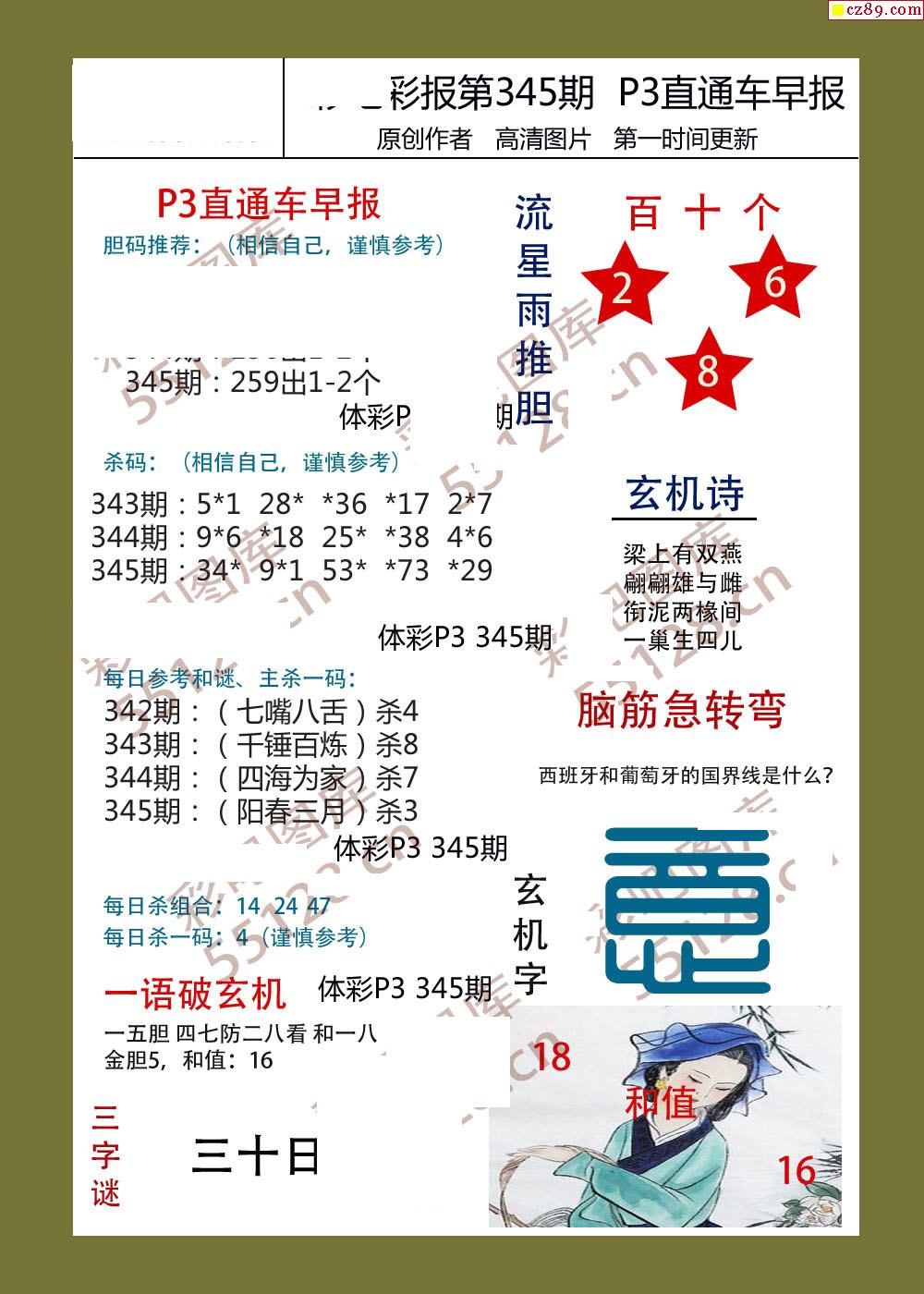 2025年345期牛彩网体彩P3画迷图谜汇总分享