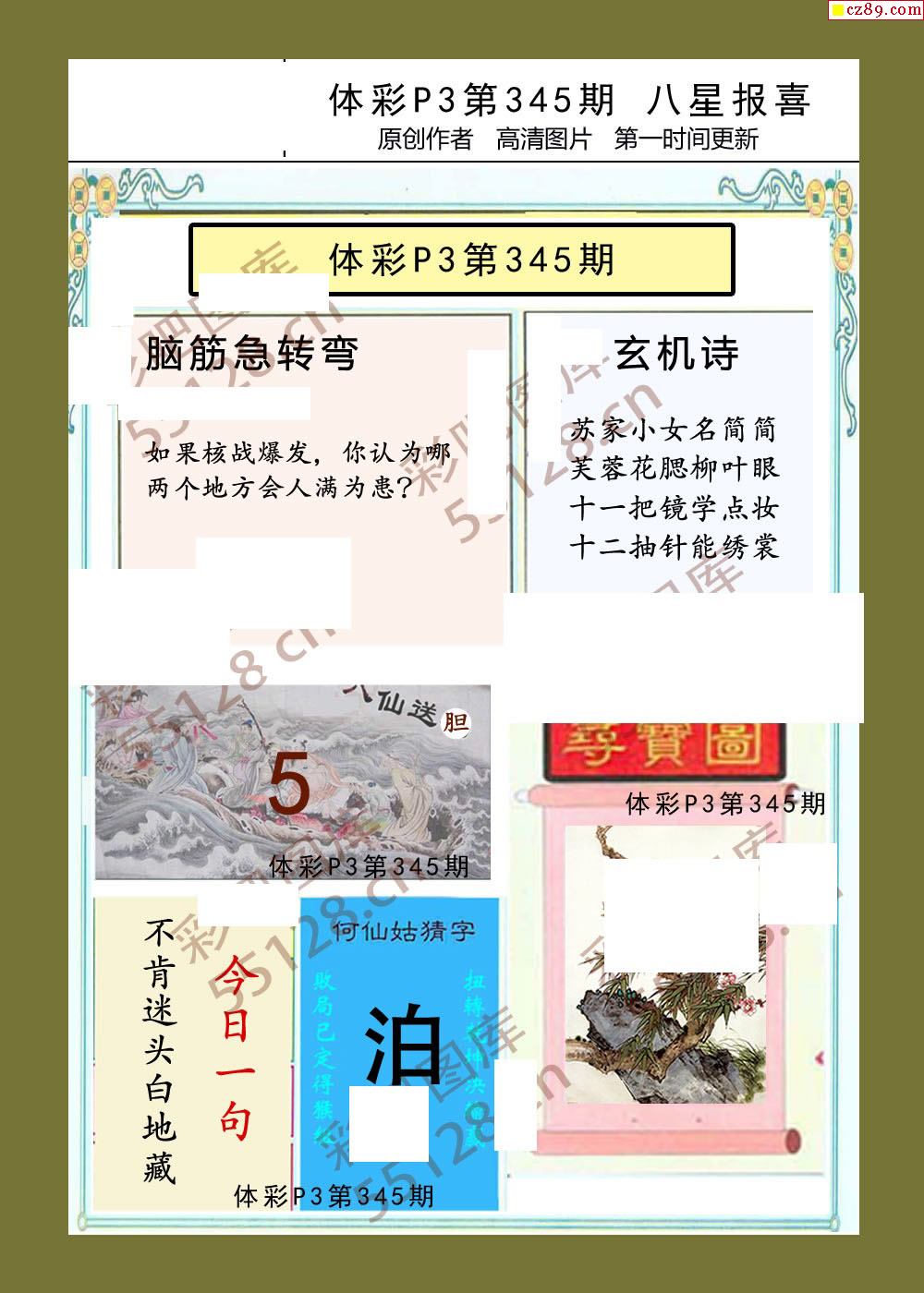 2025年345期牛彩网体彩P3画迷图谜汇总分享