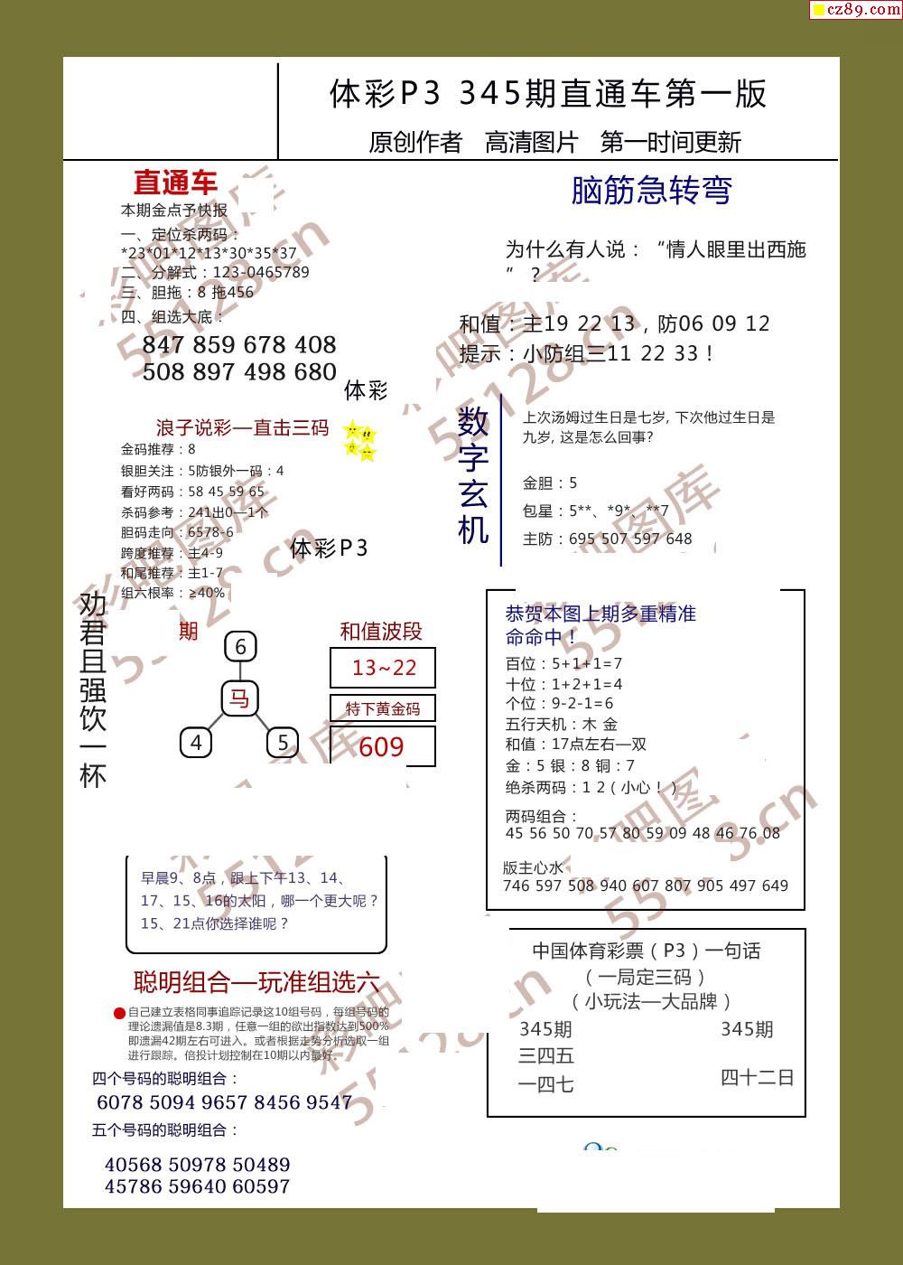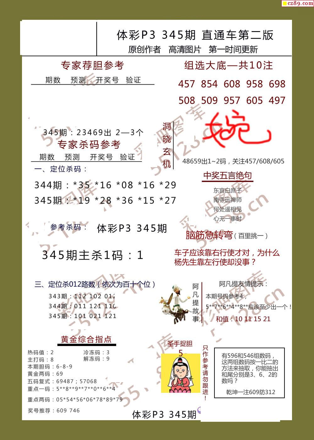 直通车AB版345期体彩p3图谜