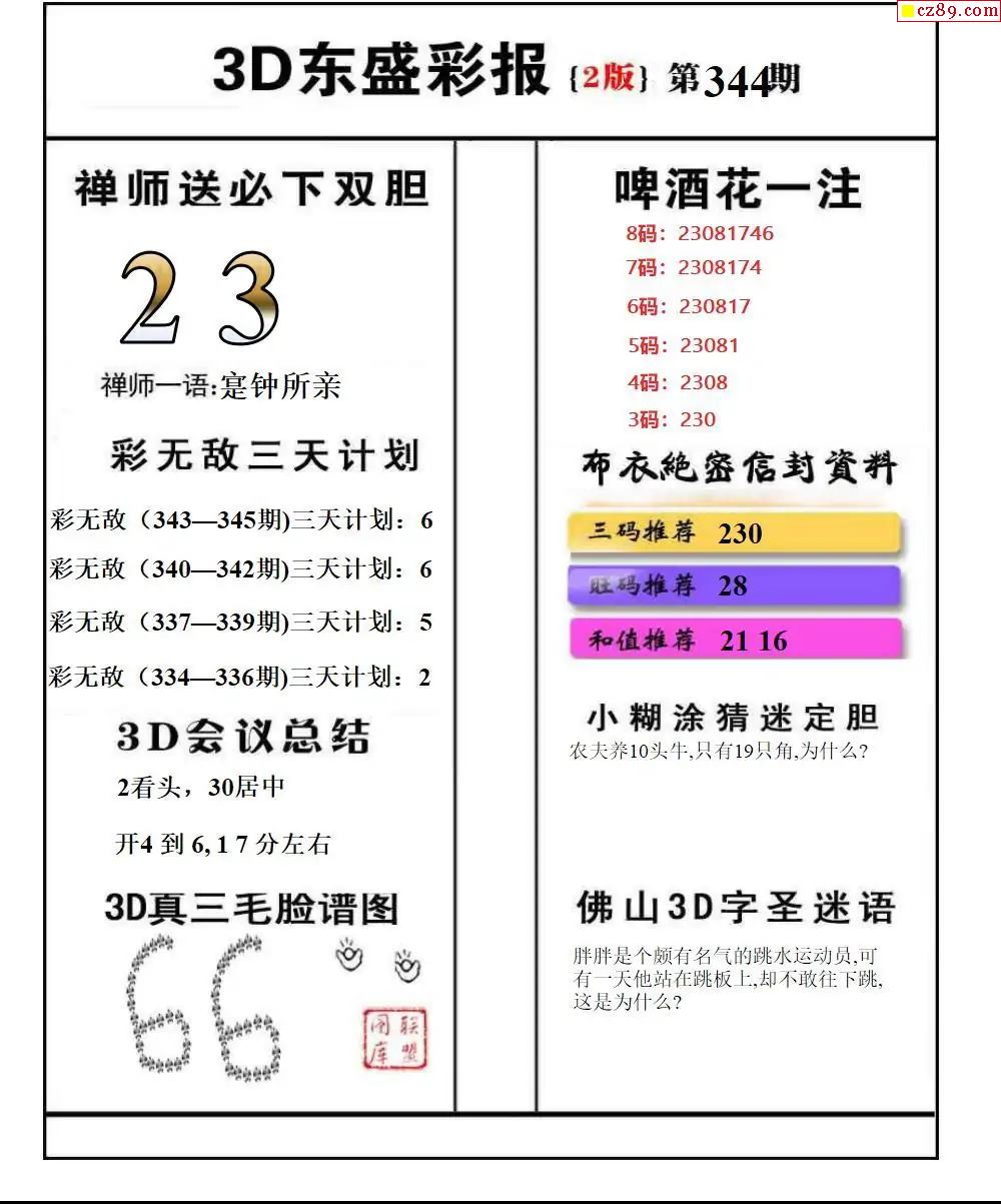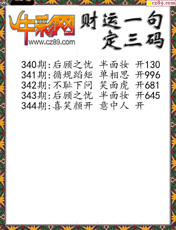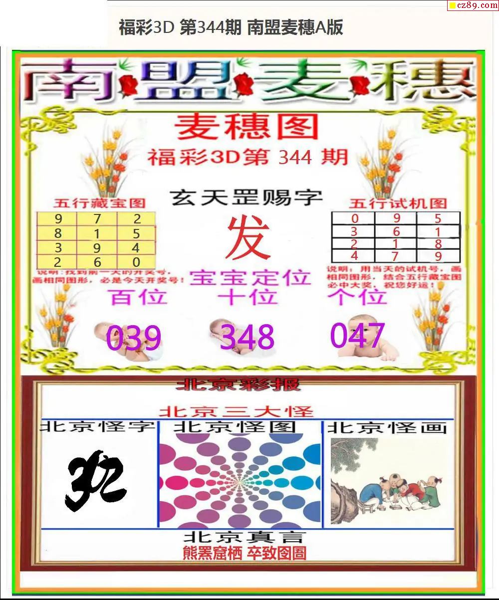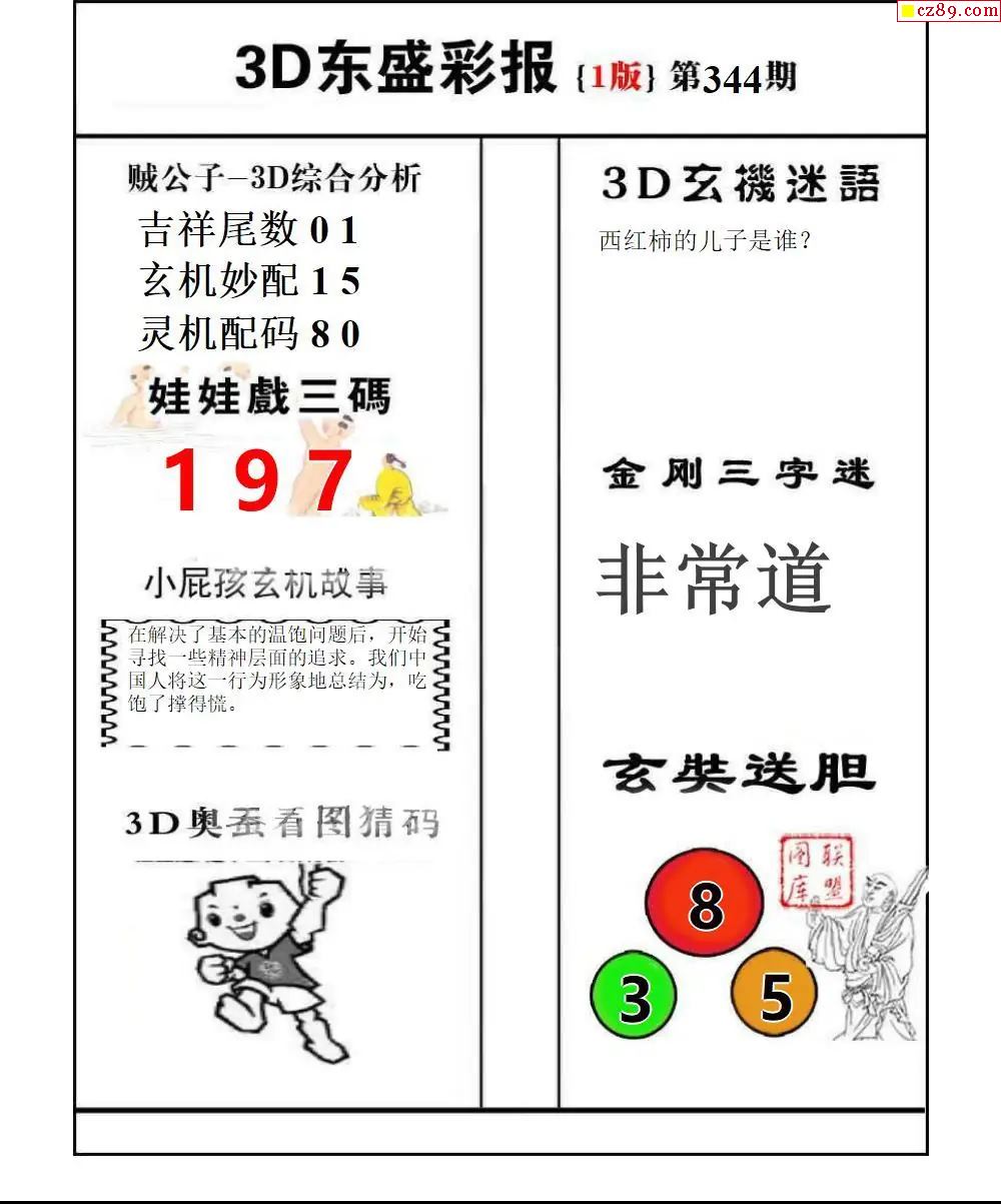 福彩3D2025344期 祁连牧哥百财纳福胆码图谜推荐