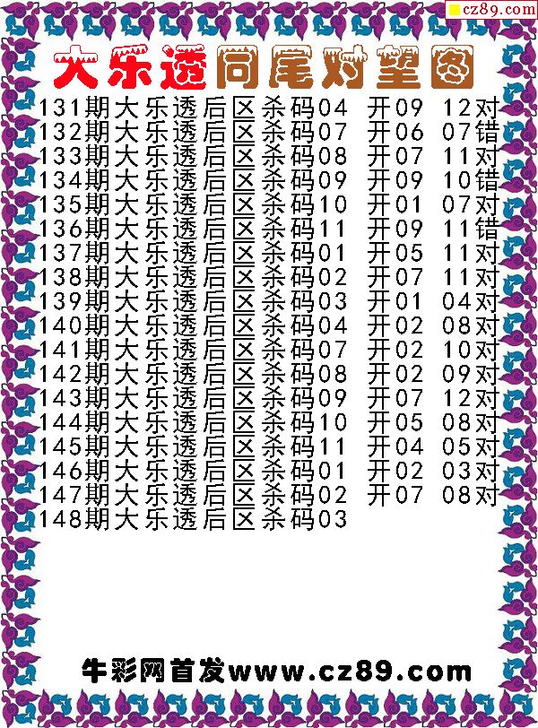 大乐透148期牛彩特邀专家前区后区杀号定胆图表