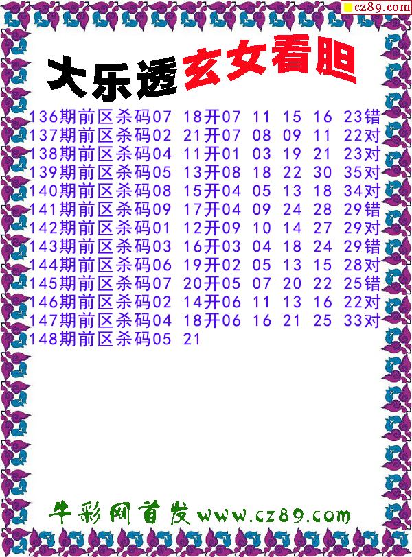 大乐透148期牛彩特邀专家前区后区杀号定胆图表