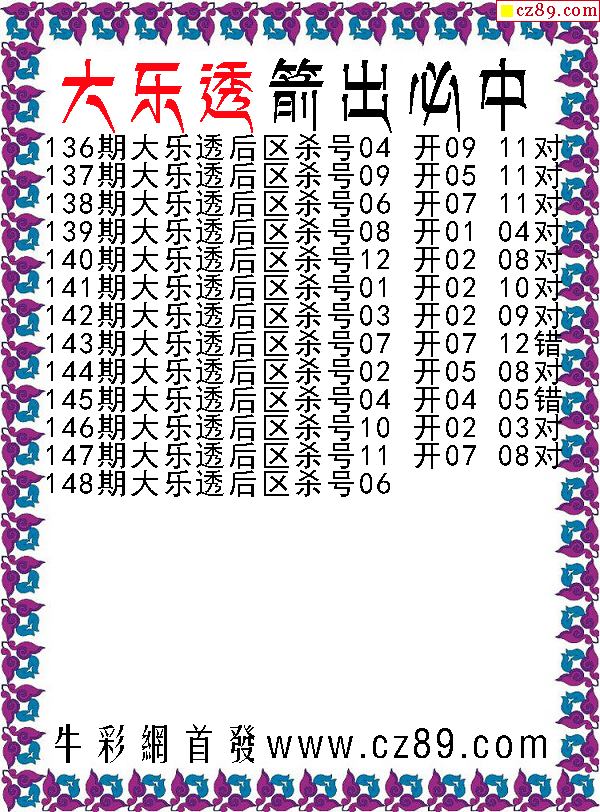 大乐透148期牛彩特邀专家前区后区杀号定胆图表