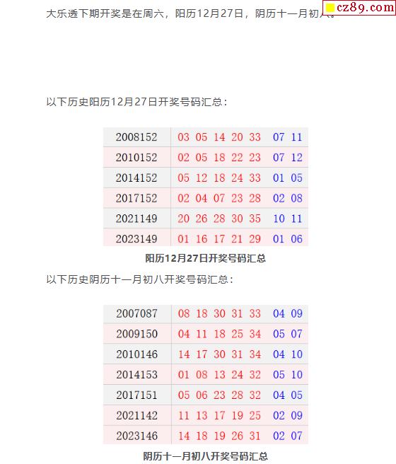 历史上的今天大乐透12月27日开奖号码汇总
