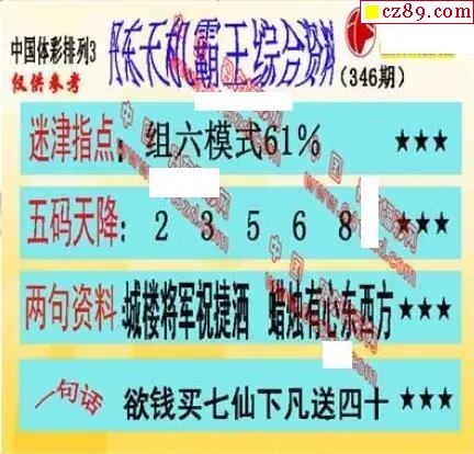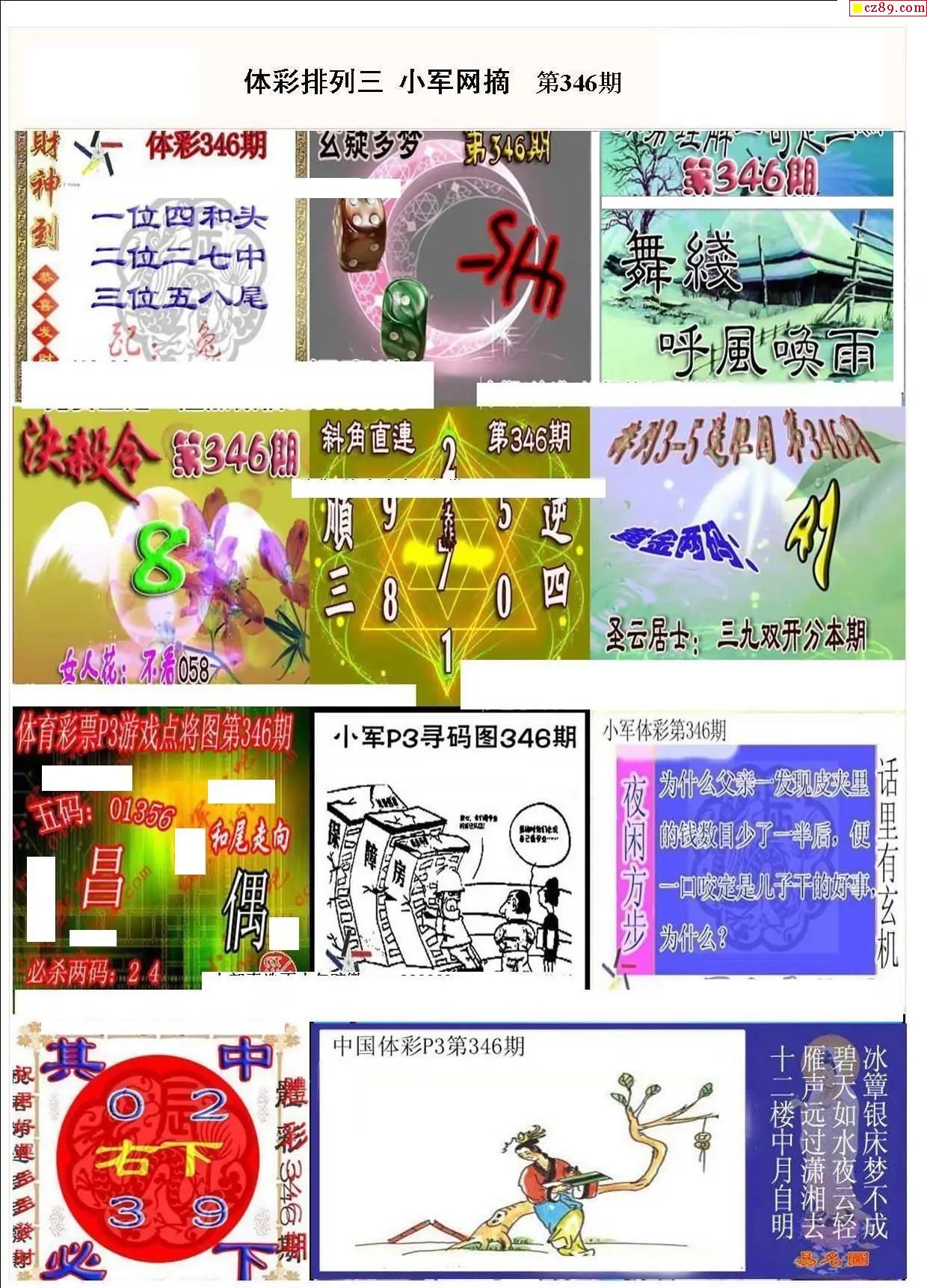 2025年346期牛彩网体彩P3画迷图谜汇总分享