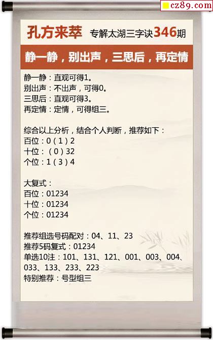 25年346期3d字谜太湖钓叟三字诀《保真》