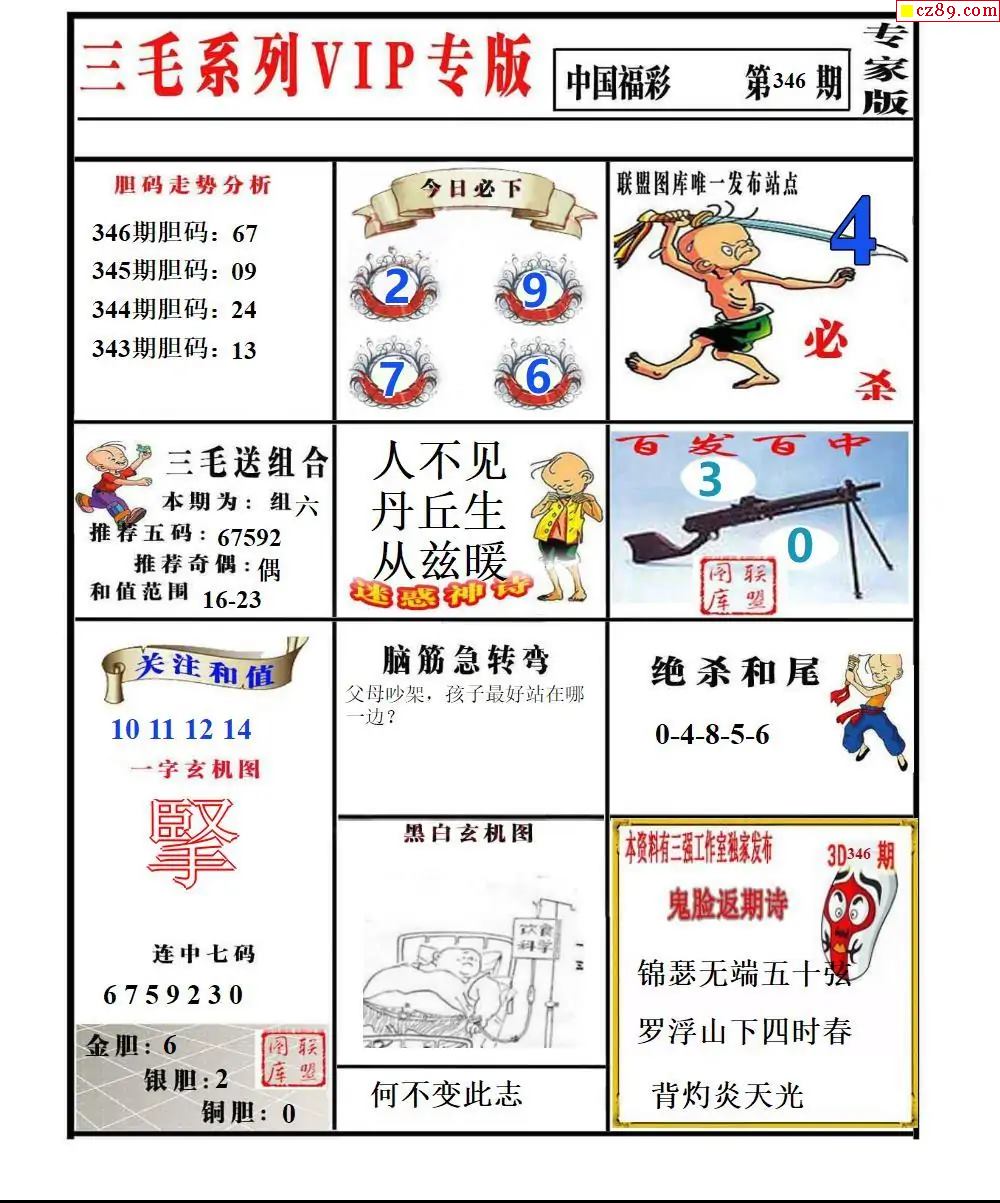 福彩3D2025346期东盛彩报+精品三毛会员版