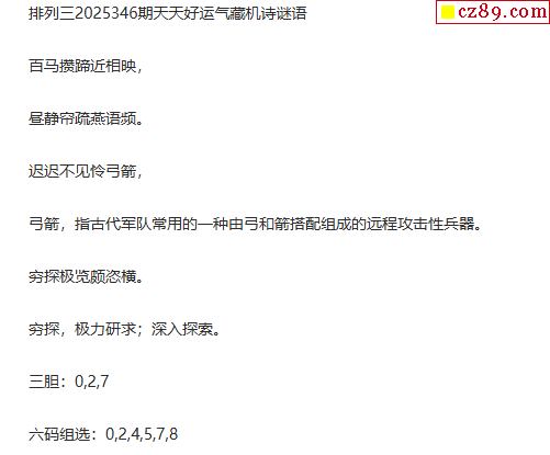 2025年藏机图346期 正版体彩P3藏机图诗汇总