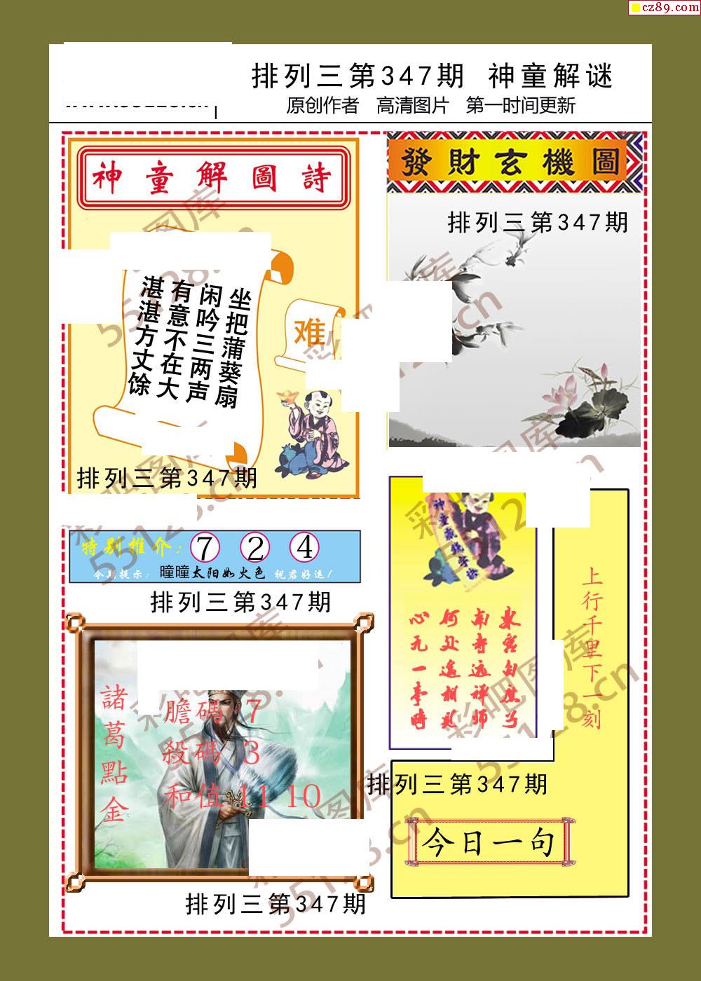2025年347期牛彩网体彩P3画迷图谜汇总分享