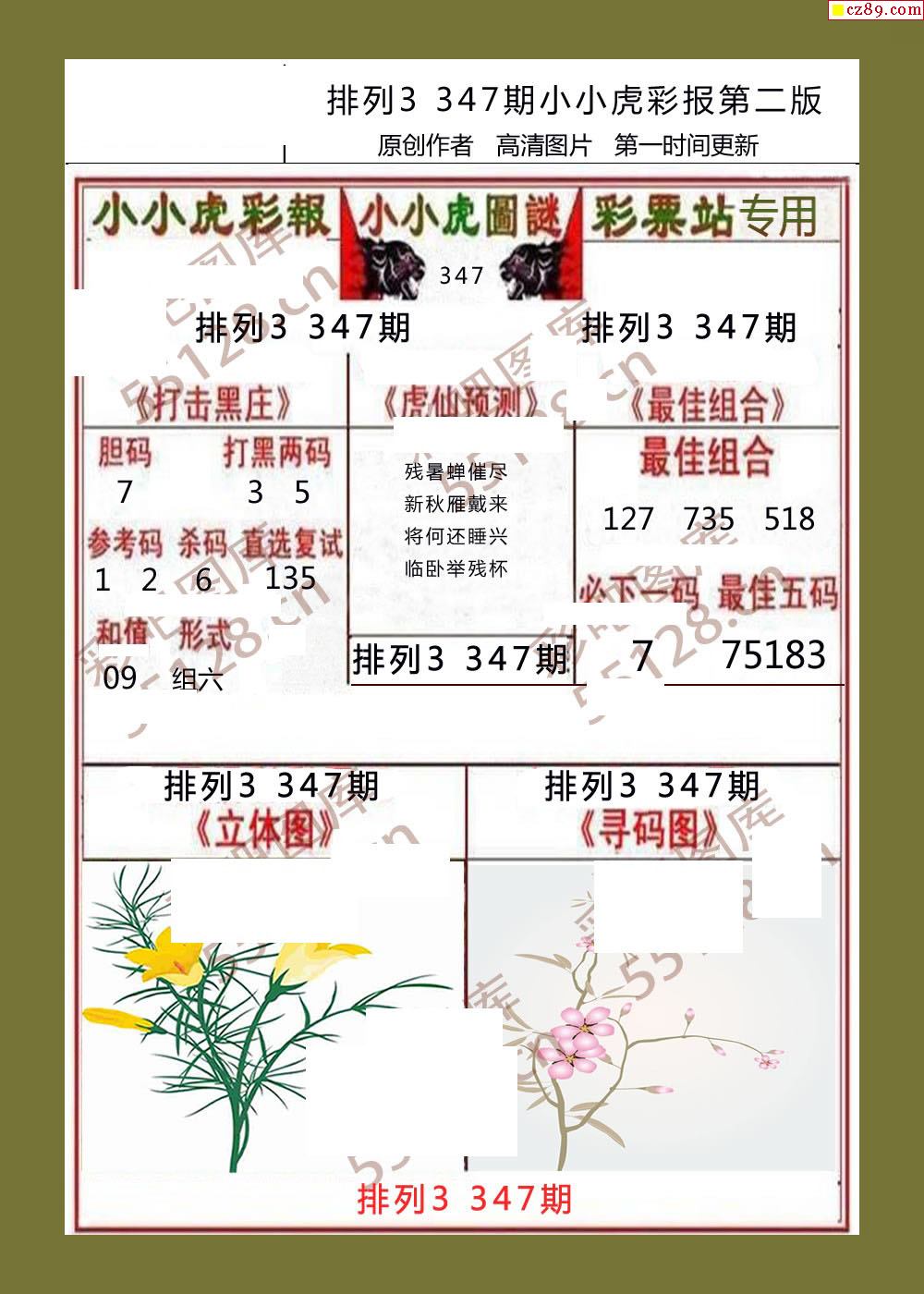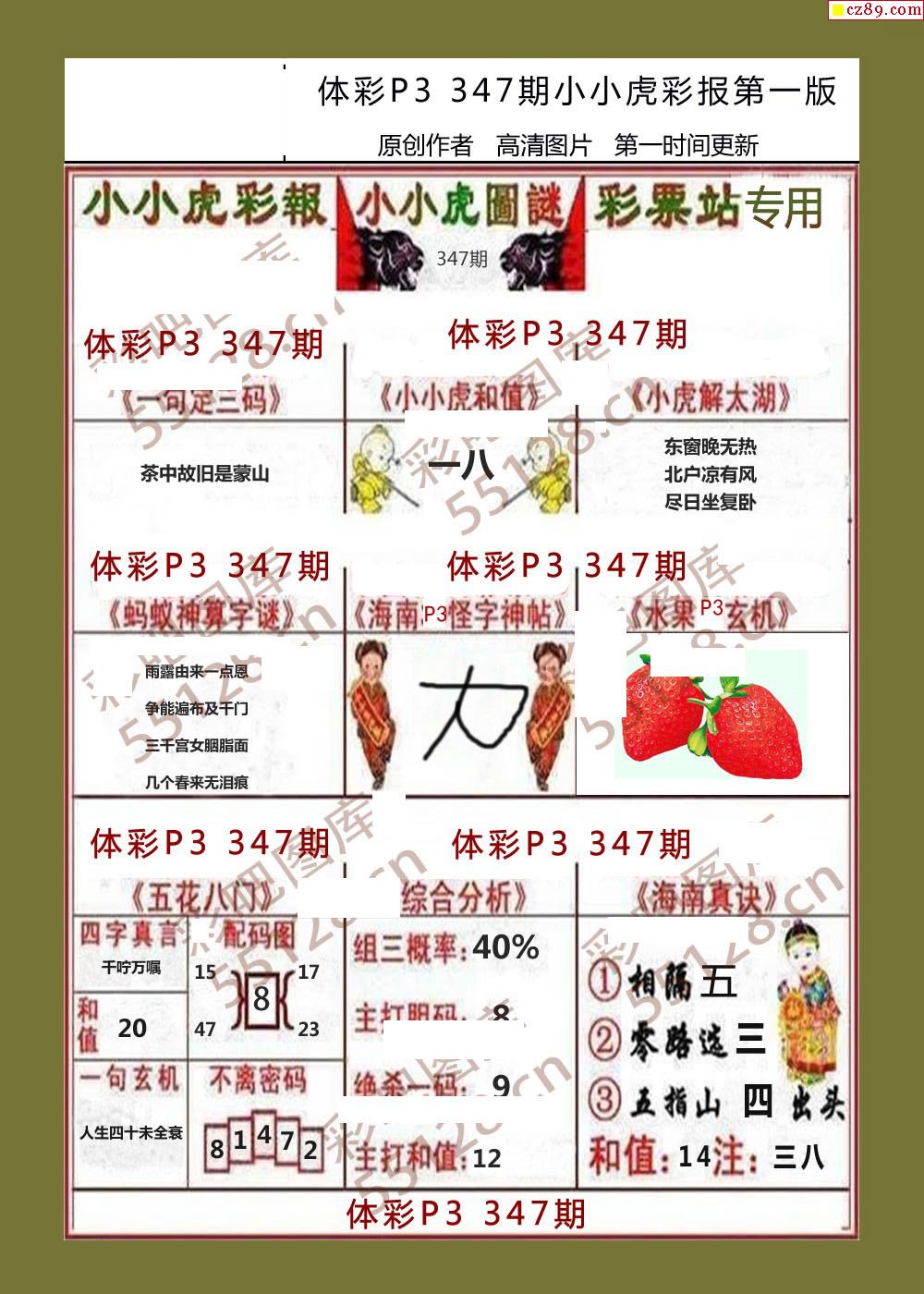 小小虎彩报347期体彩p3图谜