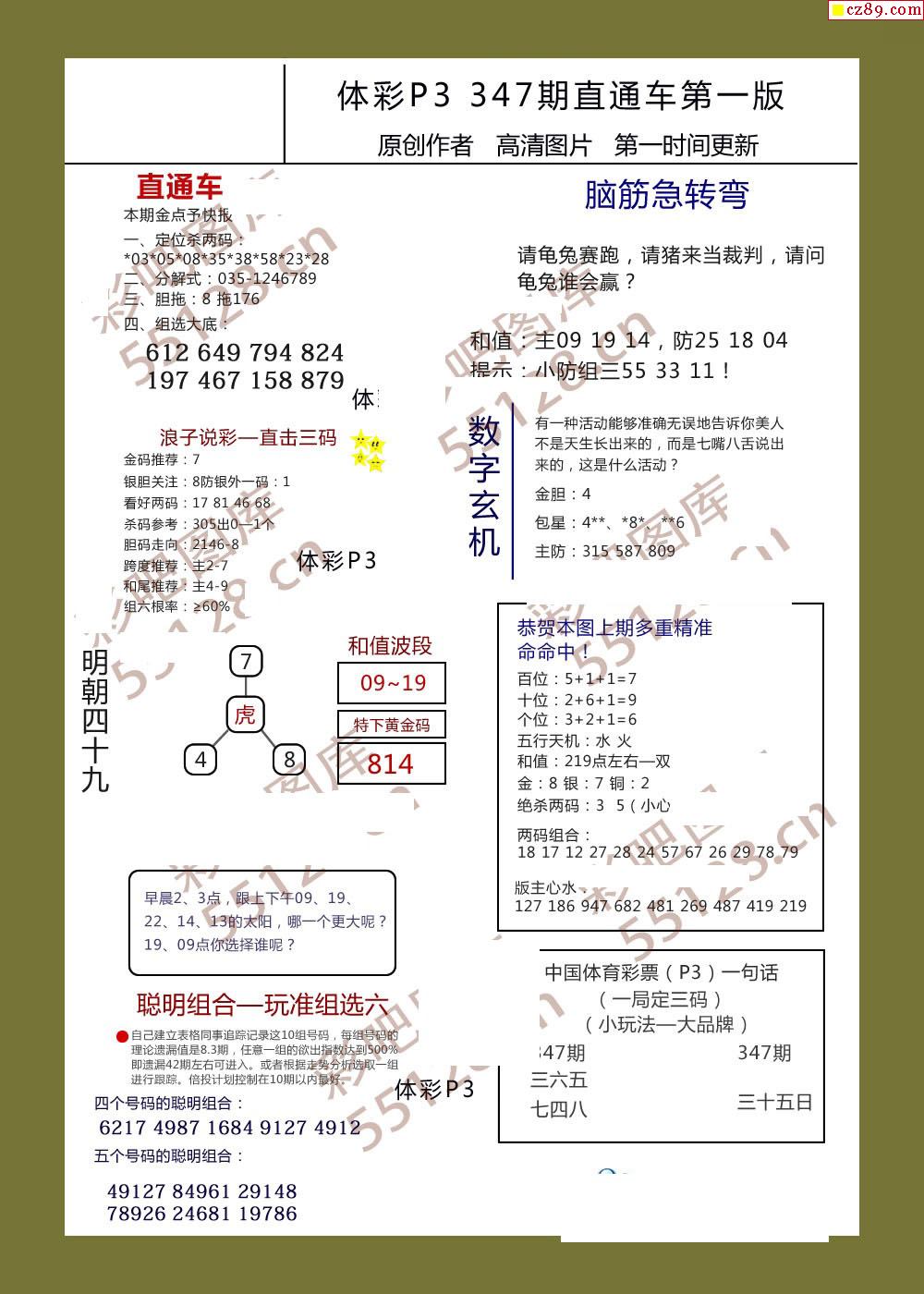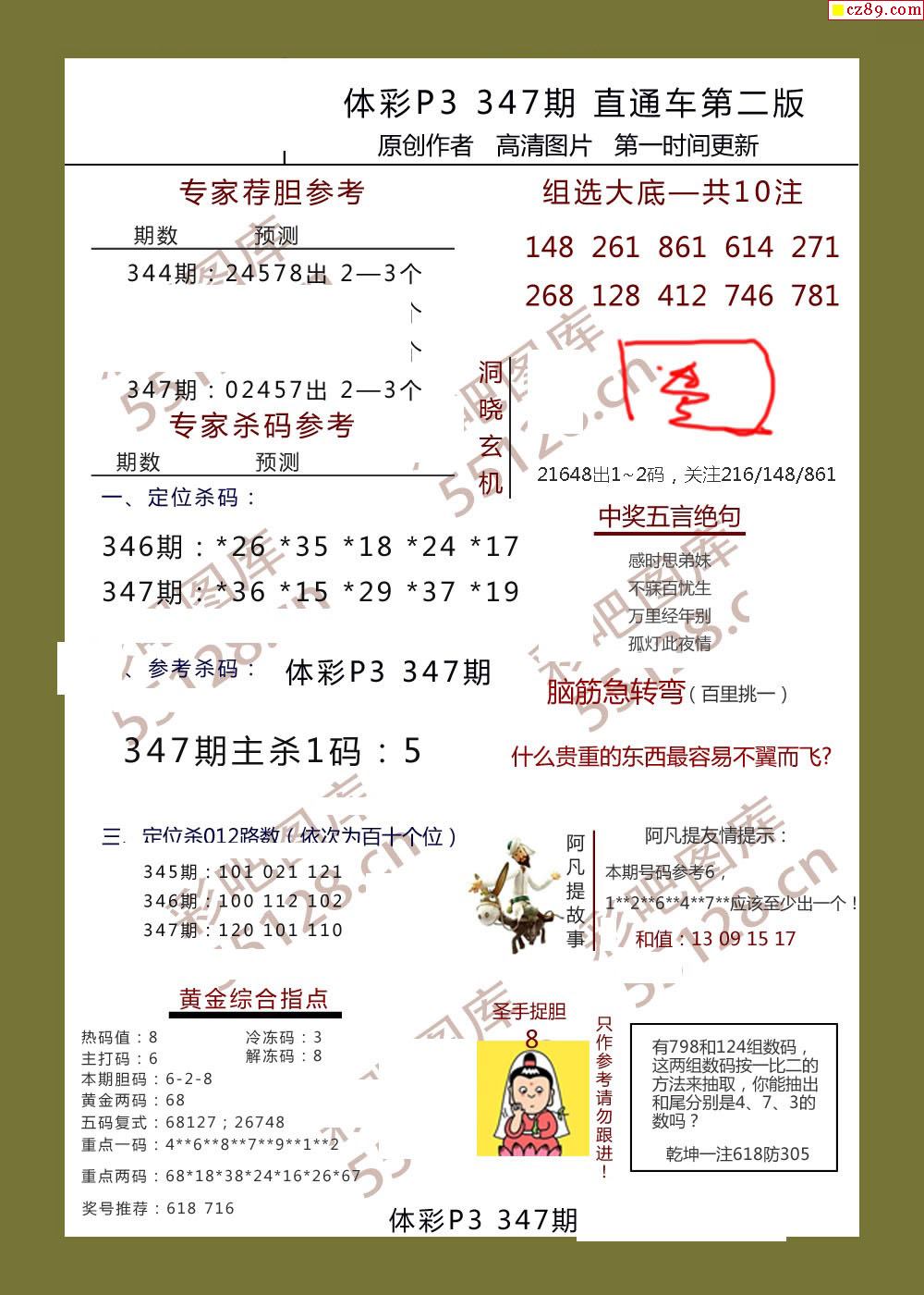 直通车AB版347期体彩p3图谜
