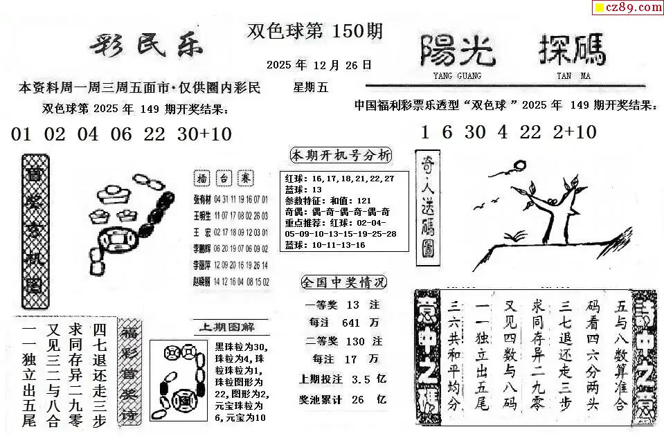 双色球2025150期 彩民乐+阳光探码图文版