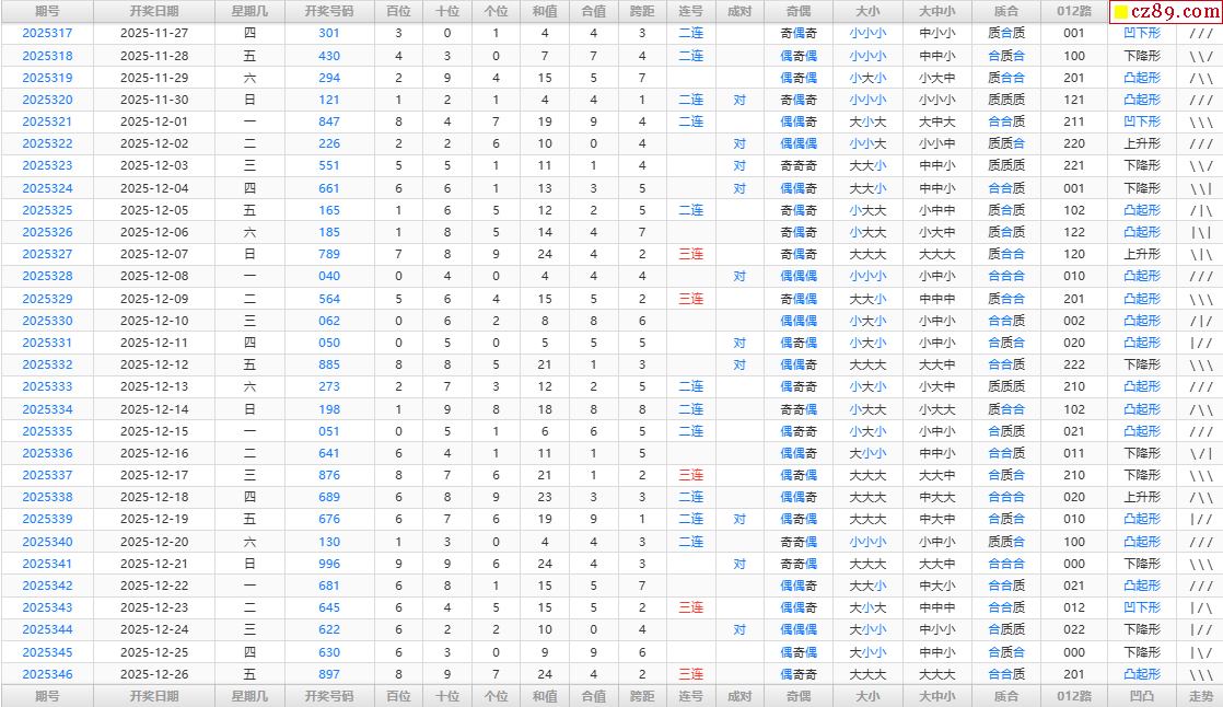 25年347期福彩3D综合统计表