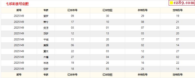 七乐彩149期 彩宝贝专家杀号码预测图表