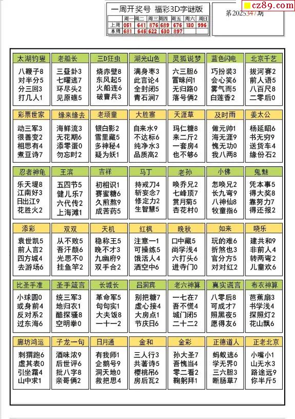 2025347期福彩3D图谜汇总