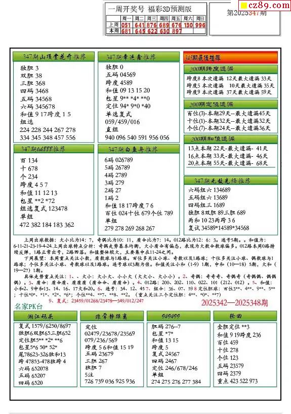 福彩3D2025347期牛彩图谜预测汇总