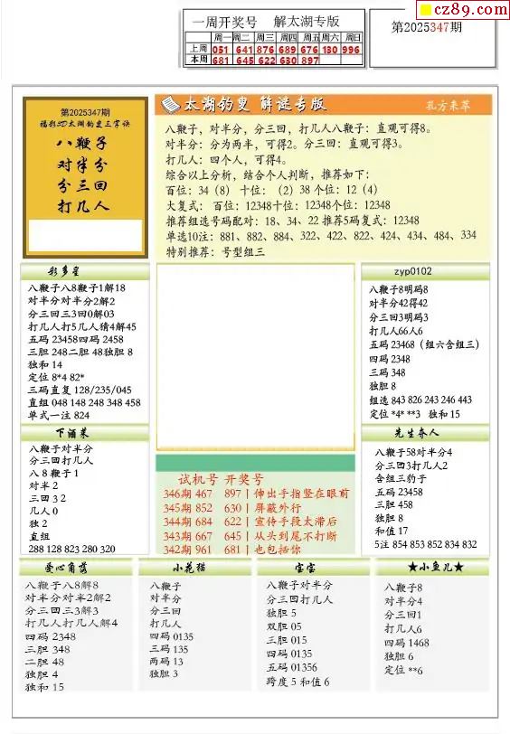 2025347期解太湖3d字图迷汇总报
