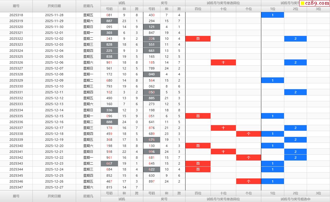 福彩3D第2025347期大红大紫试机号后专家分析